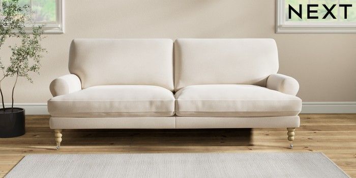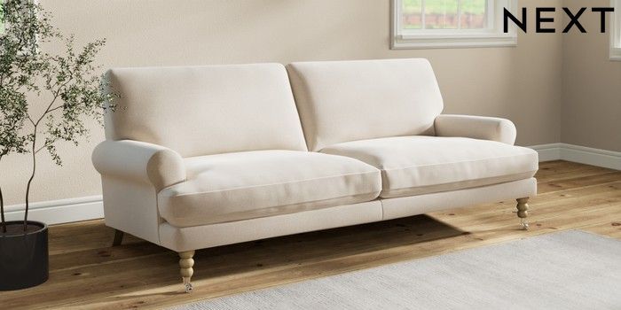 7.2.10 Erin Deep Relaxed Sit 3 Seater Sofa Studio Chenille Oyster High Classic Turned Chrome Castor - Light | Made Click here to use our website with more accessibility support, for example screen readers