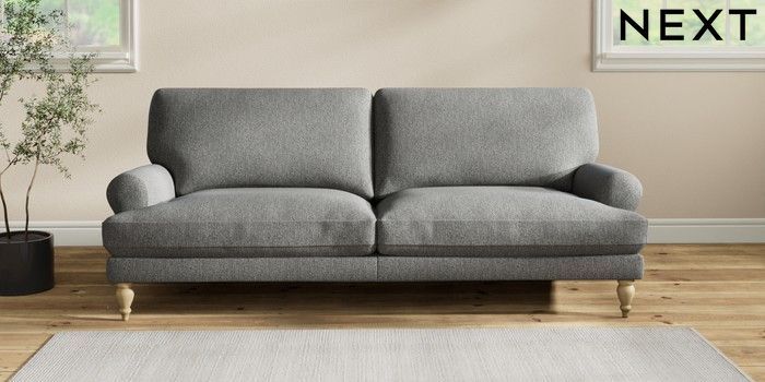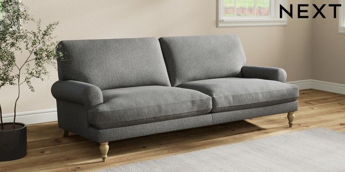 7.2.10 Erin Deep Relaxed Sit 3 Seater Sofa Tweedy Chenille Dark Grey High Classic Turned - Light | Made Click here to use our website with more accessibility support, for example screen readers
