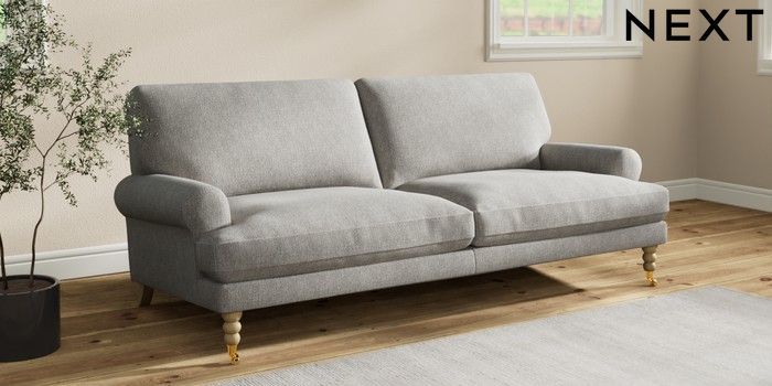 7.2.10 Erin Deep Relaxed Sit 3 Seater Sofa Tweedy Chenille Mid Grey High Classic Turned Brass Castor - Light | Made Click here to use our website with more accessibility support, for example screen readers