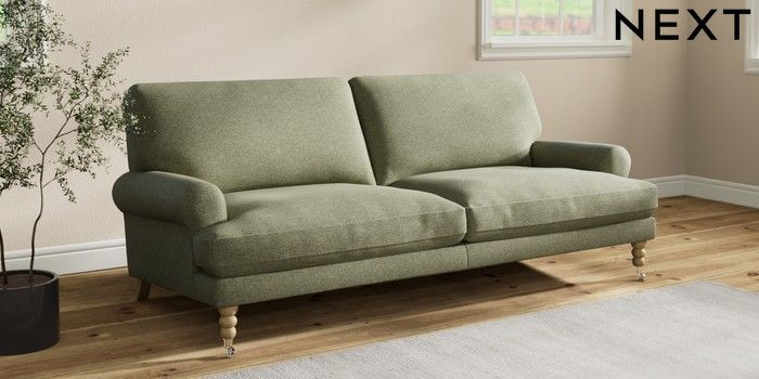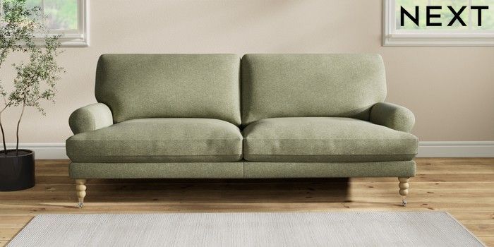 7.2.10 Erin Deep Relaxed Sit 3 Seater Sofa Tweedy Chenille Mid Moss Green High Classic Turned Chrome Castor - Light | Made Click here to use our website with more accessibility support, for example screen readers