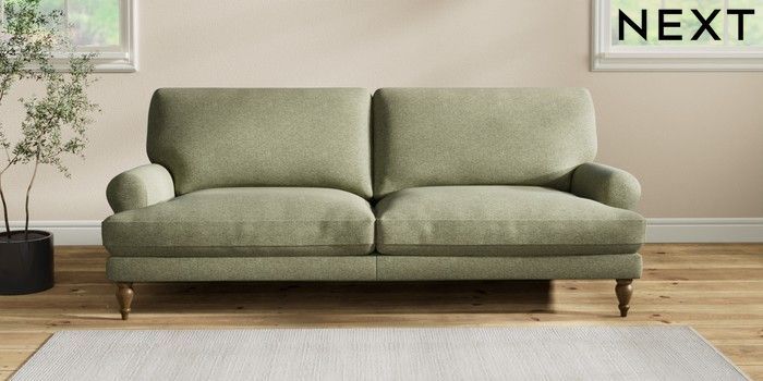7.2.10 Erin Deep Relaxed Sit 3 Seater Sofa Tweedy Chenille Mid Moss Green High Classic Turned - Mid | Made Click here to use our website with more accessibility support, for example screen readers