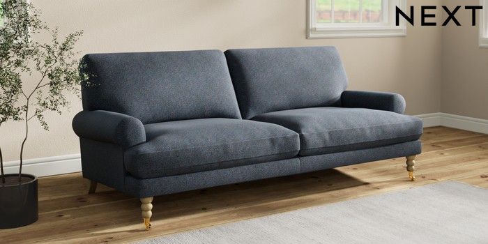 7.2.10 Erin Deep Relaxed Sit 3 Seater Sofa Tweedy Chenille Navy Blue High Classic Turned Brass Castor - Light | Made Click here to use our website with more accessibility support, for example screen readers
