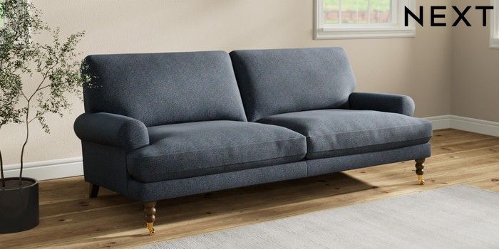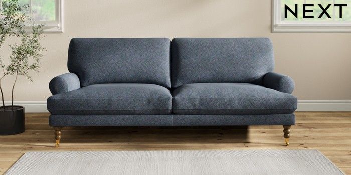 7.2.10 Erin Deep Relaxed Sit 3 Seater Sofa Tweedy Chenille Navy Blue High Classic Turned Brass Castor - Mid | Made Click here to use our website with more accessibility support, for example screen readers