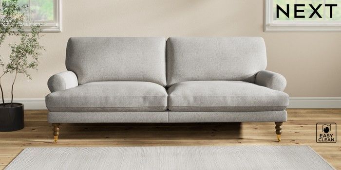 7.2.10 Erin Deep Relaxed Sit 3 Seater Sofa Woven Chenille Easy Clean Light Grey High Classic Turned Brass Castor - Mid | Made Click here to use our website with more accessibility support, for example screen readers