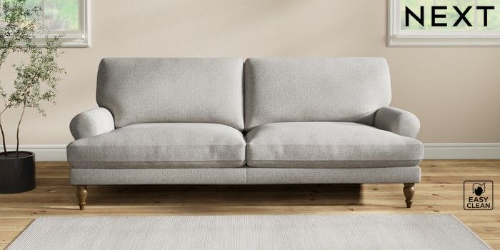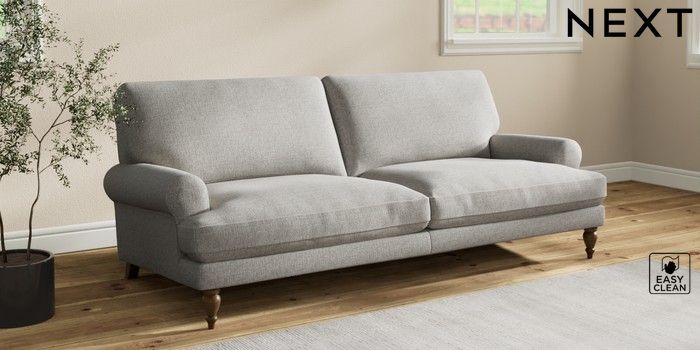 7.2.10 Erin Deep Relaxed Sit 3 Seater Sofa Woven Chenille Easy Clean Light Grey High Classic Turned - Mid | Made Click here to use our website with more accessibility support, for example screen readers