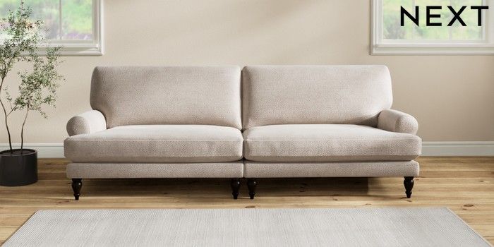 7.2.10 Erin Deep Relaxed Sit 4 Seater Large Sofa Boucle Chenille Light Natural High Classic Turned - Dark | Made Click here to use our website with more accessibility support, for example screen readers