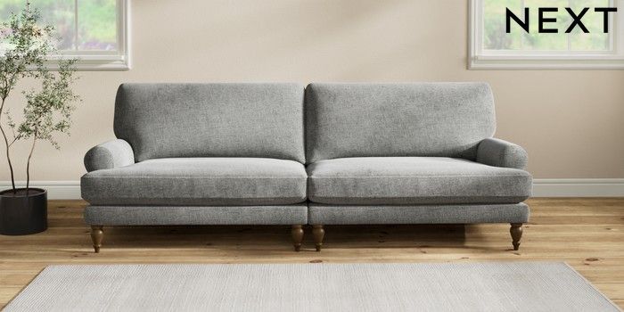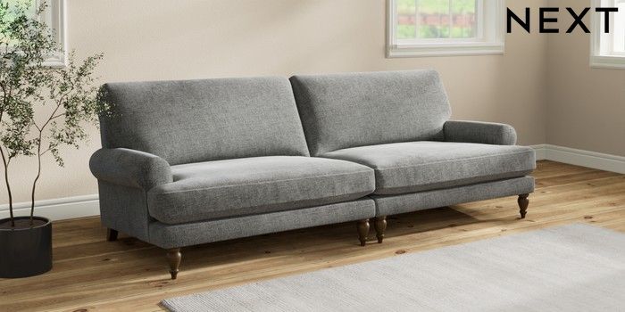 7.2.10 Erin Deep Relaxed Sit 4 Seater Large Sofa Chunky Chenille Dark Grey High Classic Turned - Mid | Made Click here to use our website with more accessibility support, for example screen readers