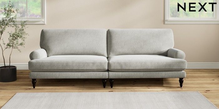 7.2.10 Erin Deep Relaxed Sit 4 Seater Large Sofa Chunky Chenille Light Grey High Classic Turned - Dark | Made Click here to use our website with more accessibility support, for example screen readers