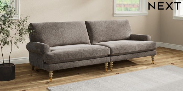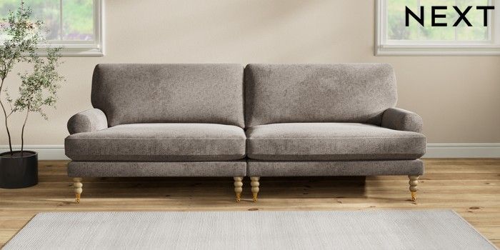 7.2.10 Erin Deep Relaxed Sit 4 Seater Large Sofa Chunky Chenille Mink Brown High Classic Turned Brass Castor - Light | Made Click here to use our website with more accessibility support, for example screen readers