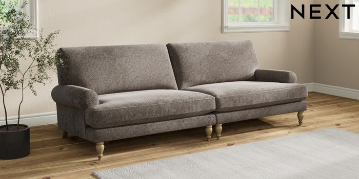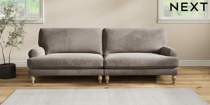 7.2.10 Erin Deep Relaxed Sit 4 Seater Large Sofa Chunky Chenille Mink Brown High Classic Turned - Light | Made Click here to use our website with more accessibility support, for example screen readers