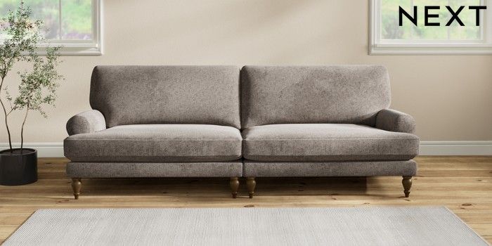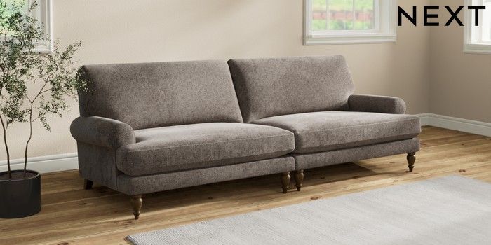 7.2.10 Erin Deep Relaxed Sit 4 Seater Large Sofa Chunky Chenille Mink Brown High Classic Turned - Mid | Made Click here to use our website with more accessibility support, for example screen readers