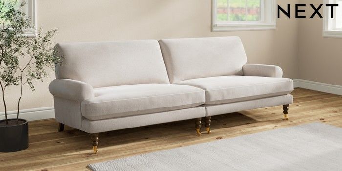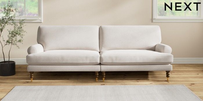 7.2.10 Erin Deep Relaxed Sit 4 Seater Large Sofa Chunky Chenille Oyster High Classic Turned Brass Castor - Mid | Made Click here to use our website with more accessibility support, for example screen readers