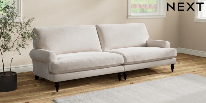 7.2.10 Erin Deep Relaxed Sit 4 Seater Large Sofa Chunky Chenille Oyster High Classic Turned - Dark | Made Click here to use our website with more accessibility support, for example screen readers
