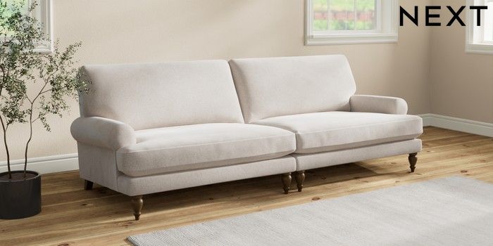 7.2.10 Erin Deep Relaxed Sit 4 Seater Large Sofa Chunky Chenille Oyster High Classic Turned - Mid | Made Click here to use our website with more accessibility support, for example screen readers