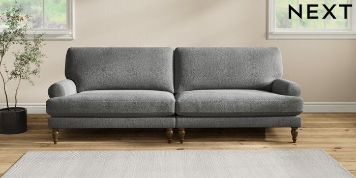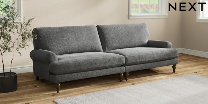 7.2.10 Erin Deep Relaxed Sit 4 Seater Large Sofa Chunky Texture Dark Grey High Classic Turned - Mid | Made Click here to use our website with more accessibility support, for example screen readers