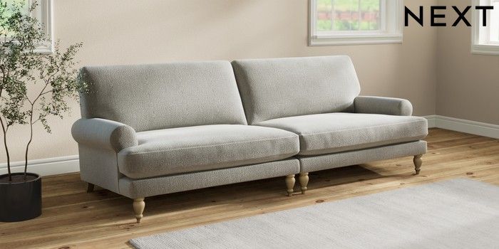 7.2.10 Erin Deep Relaxed Sit 4 Seater Large Sofa Chunky Texture Dove High Classic Turned - Light | Made Click here to use our website with more accessibility support, for example screen readers