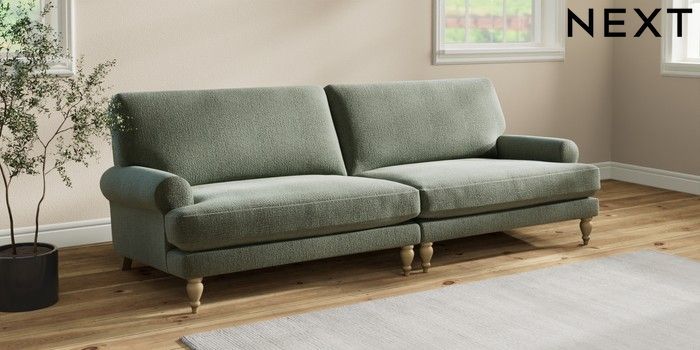 7.2.10 Erin Deep Relaxed Sit 4 Seater Large Sofa Chunky Texture Mid Forest Green High Classic Turned - Light | Made Click here to use our website with more accessibility support, for example screen readers
