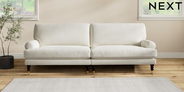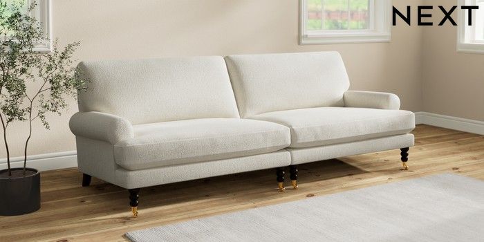 7.2.10 Erin Deep Relaxed Sit 4 Seater Large Sofa Chunky Texture Oyster High Classic Turned Brass Castor - Dark | Made Click here to use our website with more accessibility support, for example screen readers