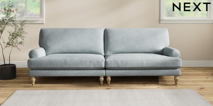 7.2.10 Erin Deep Relaxed Sit 4 Seater Large Sofa Chunky Weave Mid Blue High Classic Turned - Light | Made Click here to use our website with more accessibility support, for example screen readers