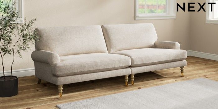 7.2.10 Erin Deep Relaxed Sit 4 Seater Large Sofa Chunky Weave Mid Natural High Classic Turned Brass Castor - Light | Made Click here to use our website with more accessibility support, for example screen readers