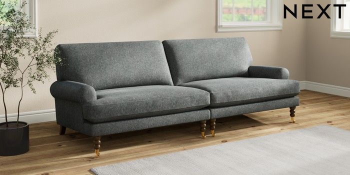 7.2.10 Erin Deep Relaxed Sit 4 Seater Large Sofa Cotswold Chenille Dark Grey High Classic Turned Brass Castor - Mid | Made Click here to use our website with more accessibility support, for example screen readers
