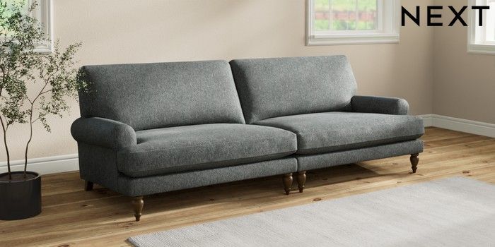 7.2.10 Erin Deep Relaxed Sit 4 Seater Large Sofa Cotswold Chenille Dark Grey High Classic Turned - Mid | Made Click here to use our website with more accessibility support, for example screen readers