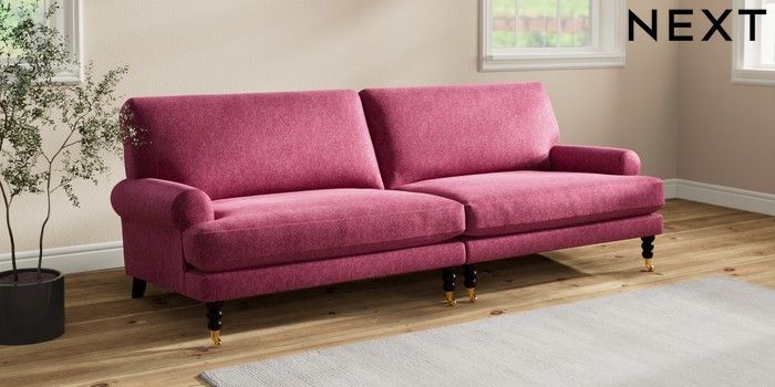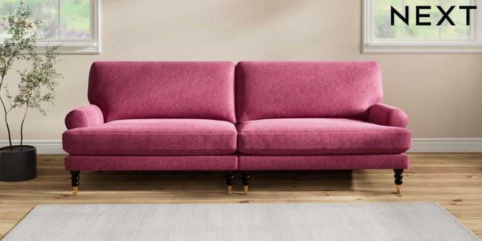 7.2.10 Erin Deep Relaxed Sit 4 Seater Large Sofa Cotswold Chenille Dark Raspberry Pink High Classic Turned Brass Castor - Dark | Made Click here to use our website with more accessibility support, for example screen readers