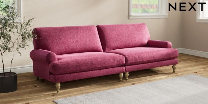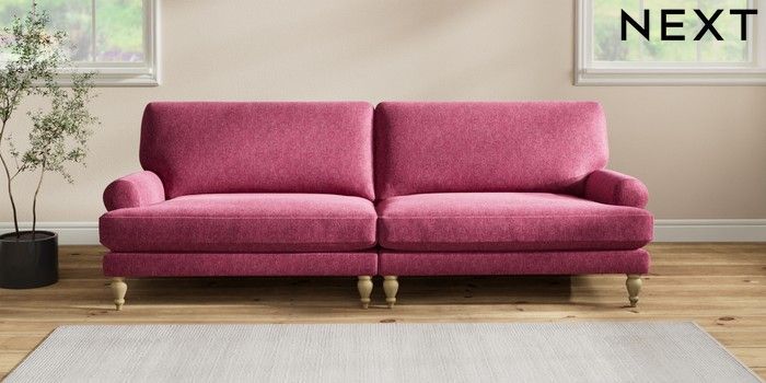 7.2.10 Erin Deep Relaxed Sit 4 Seater Large Sofa Cotswold Chenille Dark Raspberry Pink High Classic Turned - Light | Made Click here to use our website with more accessibility support, for example screen readers