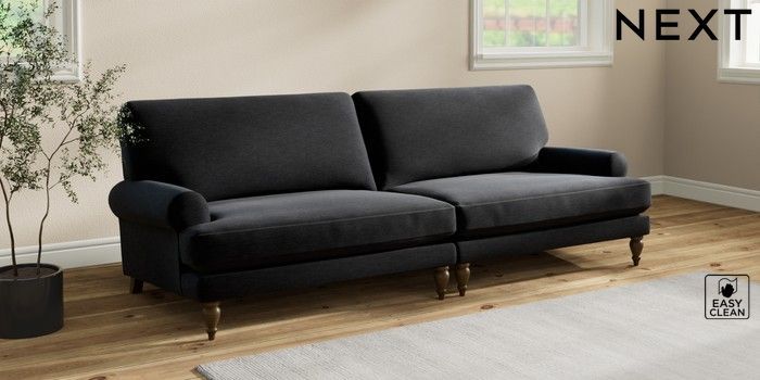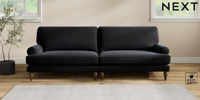 7.2.10 Erin Deep Relaxed Sit 4 Seater Large Sofa Fine Chenille Easy Clean Black High Classic Turned - Mid | Made Click here to use our website with more accessibility support, for example screen readers
