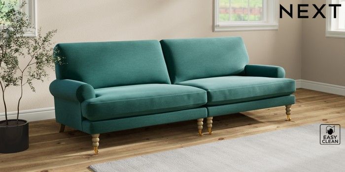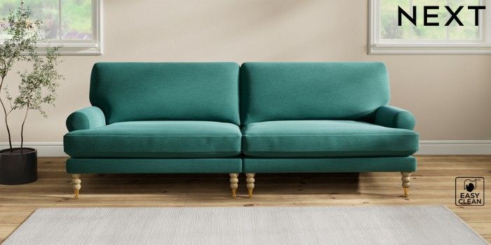 7.2.10 Erin Deep Relaxed Sit 4 Seater Large Sofa Fine Chenille Easy Clean Dark Juniper Green High Classic Turned Brass Castor - Light | Made Click here to use our website with more accessibility support, for example screen readers