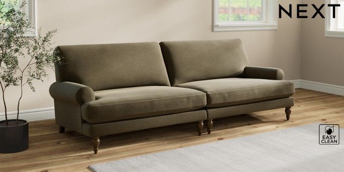 7.2.10 Erin Deep Relaxed Sit 4 Seater Large Sofa Fine Chenille Easy Clean Dark Moss Green High Classic Turned - Mid | Made Click here to use our website with more accessibility support, for example screen readers