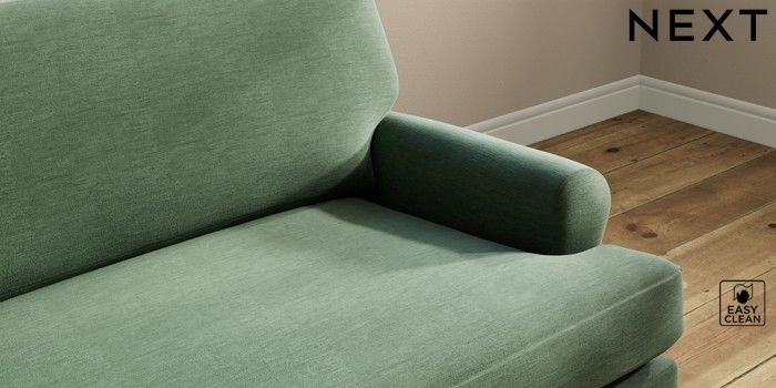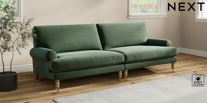 7.2.10 Erin Deep Relaxed Sit 4 Seater Large Sofa Fine Chenille Easy Clean Mid Khaki Green High Classic Turned Brass Castor - Light | Made Click here to use our website with more accessibility support, for example screen readers