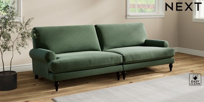7.2.10 Erin Deep Relaxed Sit 4 Seater Large Sofa Fine Chenille Easy Clean Mid Khaki Green High Classic Turned - Dark | Made Click here to use our website with more accessibility support, for example screen readers