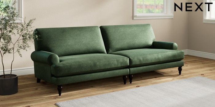7.2.10 Erin Deep Relaxed Sit 4 Seater Large Sofa Luxe Chenille Dark Green High Classic Turned - Dark | Made Click here to use our website with more accessibility support, for example screen readers
