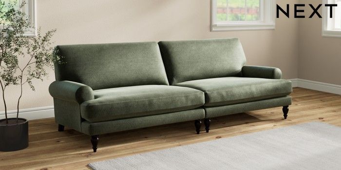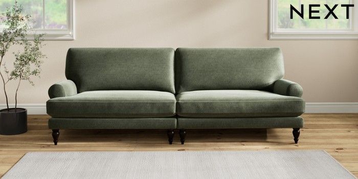 7.2.10 Erin Deep Relaxed Sit 4 Seater Large Sofa Luxe Chenille Mid Green High Classic Turned - Dark | Made Click here to use our website with more accessibility support, for example screen readers
