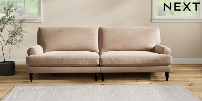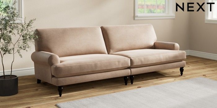 7.2.10 Erin Deep Relaxed Sit 4 Seater Large Sofa Luxe Chenille Mid Natural High Classic Turned - Dark | Made Click here to use our website with more accessibility support, for example screen readers