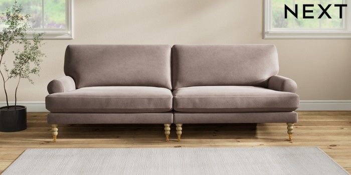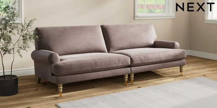 7.2.10 Erin Deep Relaxed Sit 4 Seater Large Sofa Luxe Chenille Mink Brown High Classic Turned Brass Castor - Light | Made Click here to use our website with more accessibility support, for example screen readers