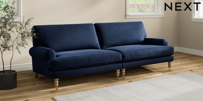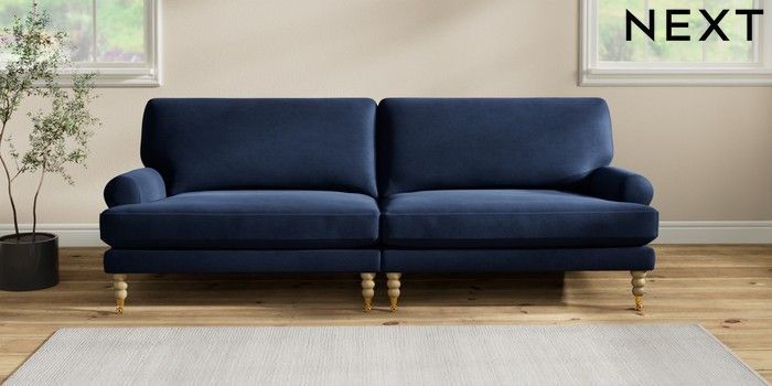 7.2.10 Erin Deep Relaxed Sit 4 Seater Large Sofa Luxe Chenille Navy Blue High Classic Turned Brass Castor - Light | Made Click here to use our website with more accessibility support, for example screen readers