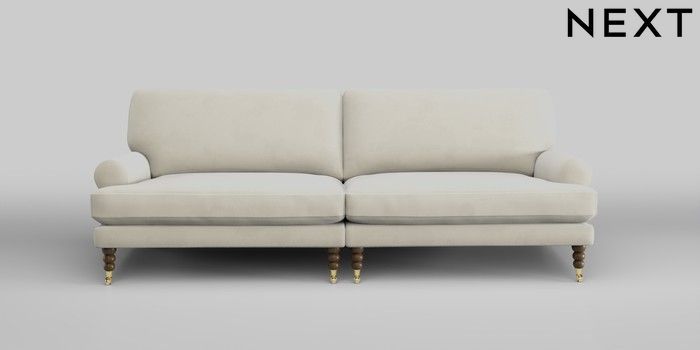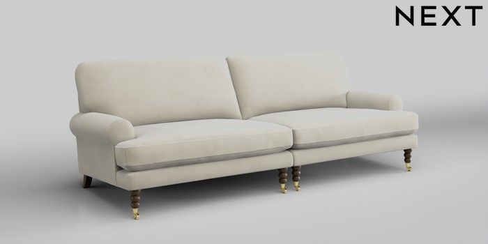 7.2.10 Erin Deep Relaxed Sit 4 Seater Large Sofa Luxe Chenille Oyster High Classic Turned Brass Castor - Mid | Made Click here to use our website with more accessibility support, for example screen readers