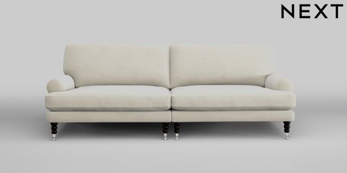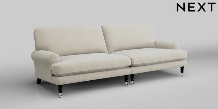 7.2.10 Erin Deep Relaxed Sit 4 Seater Large Sofa Luxe Chenille Oyster High Classic Turned Chrome Castor - Dark | Made Click here to use our website with more accessibility support, for example screen readers