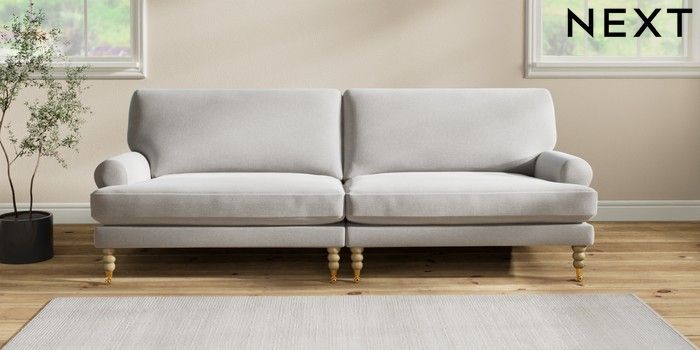 7.2.10 Erin Deep Relaxed Sit 4 Seater Large Sofa Natural Mix Light Grey High Classic Turned Brass Castor - Light | Made Click here to use our website with more accessibility support, for example screen readers