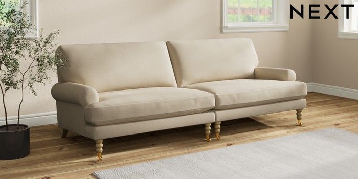 7.2.10 Erin Deep Relaxed Sit 4 Seater Large Sofa Natural Mix Light Natural High Classic Turned Brass Castor - Light | Made Click here to use our website with more accessibility support, for example screen readers