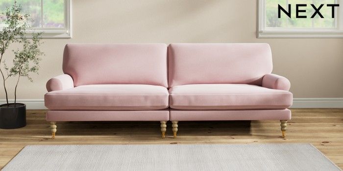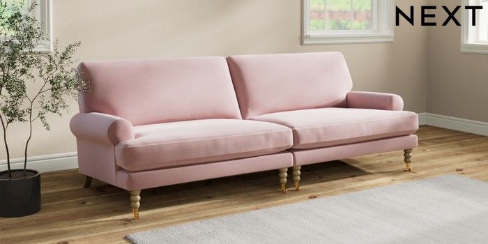7.2.10 Erin Deep Relaxed Sit 4 Seater Large Sofa Natural Mix Light Rose Pink High Classic Turned Brass Castor - Light | Made Click here to use our website with more accessibility support, for example screen readers