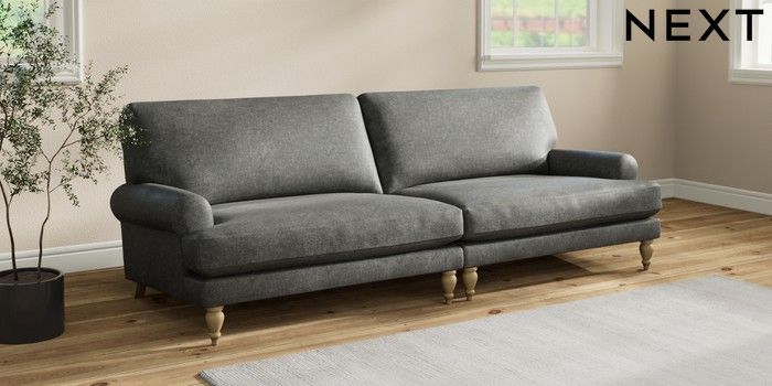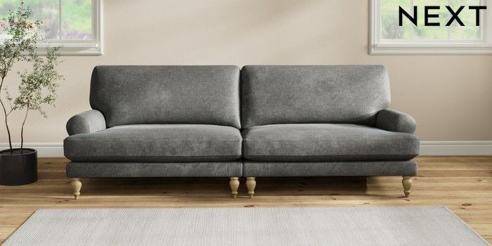 7.2.10 Erin Deep Relaxed Sit 4 Seater Large Sofa Plush Chenille Dark Grey High Classic Turned - Light | Made Click here to use our website with more accessibility support, for example screen readers