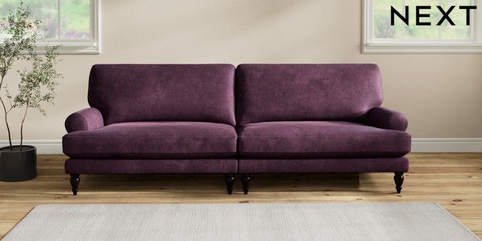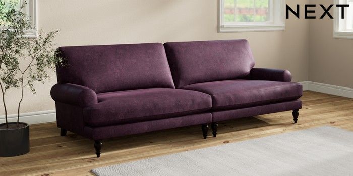 7.2.10 Erin Deep Relaxed Sit 4 Seater Large Sofa Plush Chenille Dark Plum Purple High Classic Turned - Dark | Made Click here to use our website with more accessibility support, for example screen readers