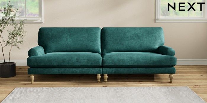 7.2.10 Erin Deep Relaxed Sit 4 Seater Large Sofa Plush Chenille Dark Teal Green High Classic Turned - Light | Made Click here to use our website with more accessibility support, for example screen readers