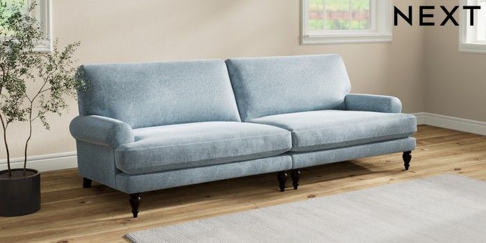 7.2.10 Erin Deep Relaxed Sit 4 Seater Large Sofa Plush Chenille Light Blue High Classic Turned - Dark | Made Click here to use our website with more accessibility support, for example screen readers