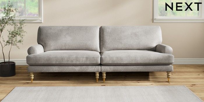 7.2.10 Erin Deep Relaxed Sit 4 Seater Large Sofa Plush Chenille Light Grey High Classic Turned Brass Castor - Light | Made Click here to use our website with more accessibility support, for example screen readers