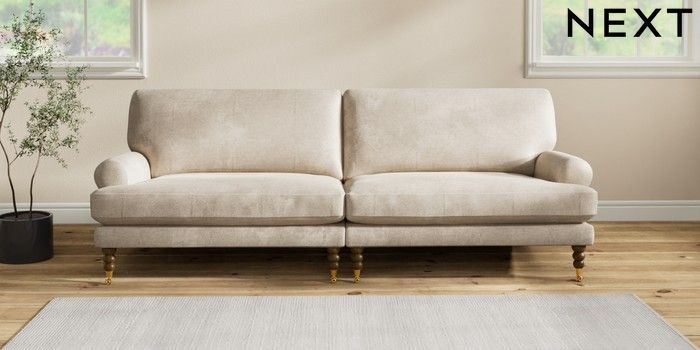 7.2.10 Erin Deep Relaxed Sit 4 Seater Large Sofa Plush Chenille Light Natural High Classic Turned Brass Castor - Mid | Made Click here to use our website with more accessibility support, for example screen readers