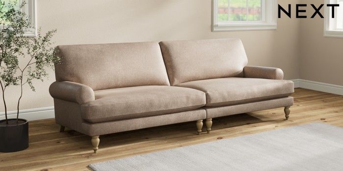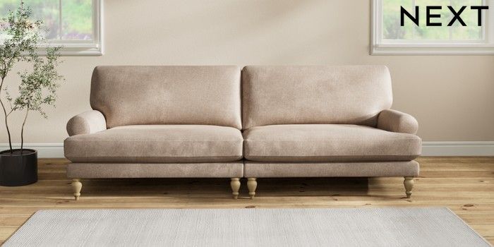 7.2.10 Erin Deep Relaxed Sit 4 Seater Large Sofa Plush Chenille Mid Natural High Classic Turned - Light | Made Click here to use our website with more accessibility support, for example screen readers